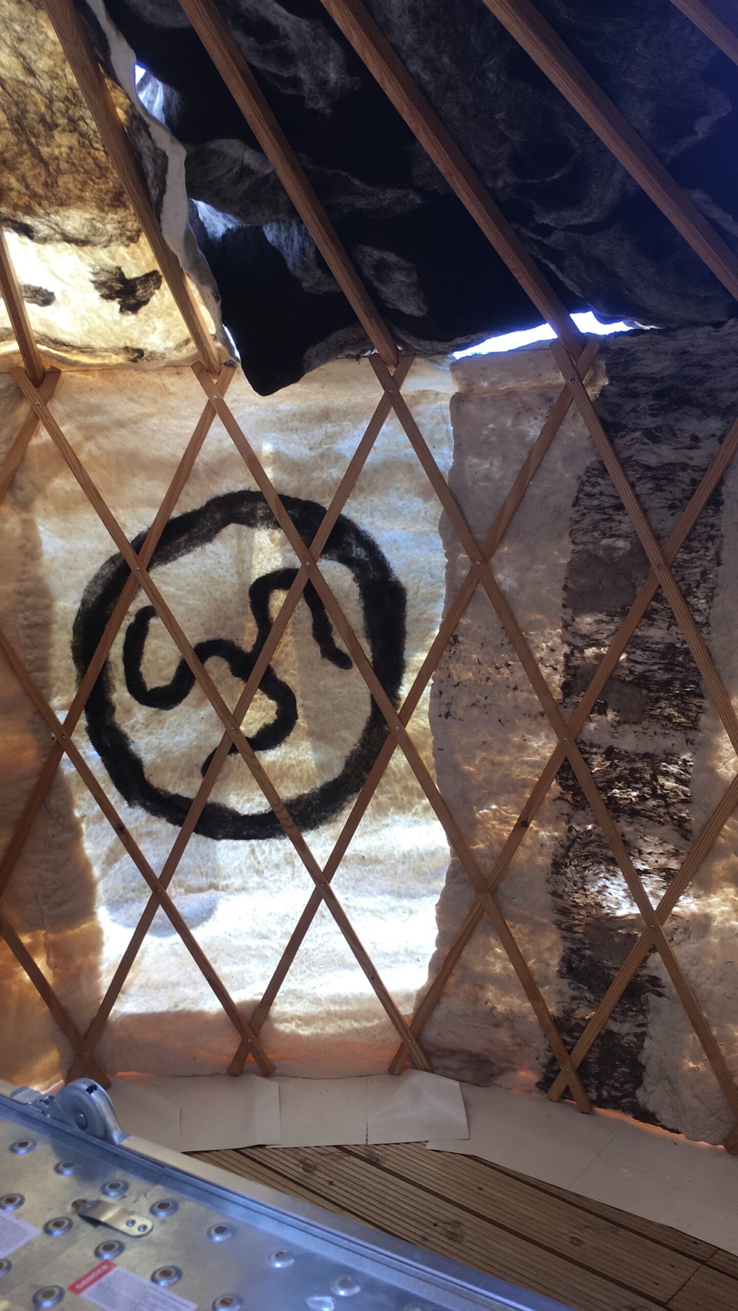 Yurt assente numa plataforma de nivelamento em madeira tratada de pinho silvestre com tratamento tanalith com a dimensão de 5.70m x 5.70m.